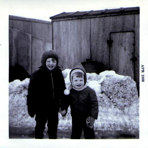 3. Frábær mynd !! Það eru náttúrlega við Steina ég segi nú eins og Gunna „skelmisleg“ hvað er það, hræddur ? það var nú ekki fyrr en um kvöldið sem ég sagði þér drauga kompu sögu ! En ég man vel eftir þessari lambhúshettu sem ég er með, hún var blá og stækkaði með mér og þurfti ég því að vera með hana á hausnum yfir nokka vetrarmánuði..