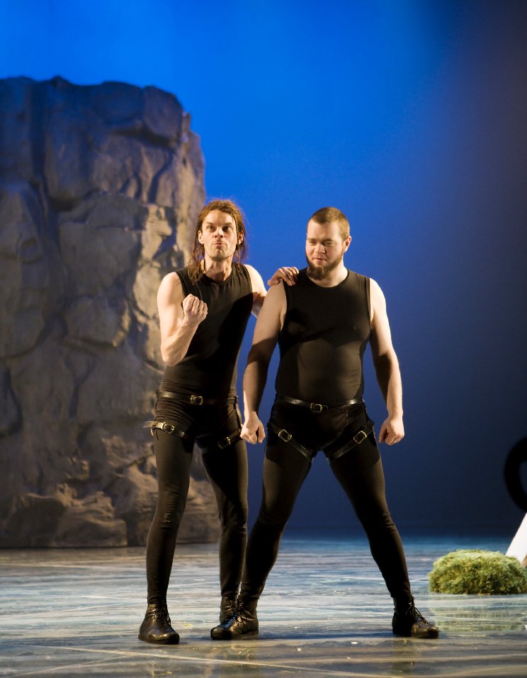 Fór að sjá Gerplu í gærkvöldi í Þjóðleikhúsinu. Baltasar Kormákur leikstýrir og samdi leikgerðina ásamt Ólafi Egilssyni og leikhópnum, hún er ansi snjöll og húmorinn algjörlega í öndvegi. Sögumannsformið var notað í góðu hófi, Ólafur Darri þrumaði yfir salinn þegar við átti. Leikmynd Gretars Reynissonar er mjög flott, snarbrattur hamar, loðnar þúfur og burstabæir úr tjöldum sem geta á einu augnabliki breyst í lokrekkju eða æstan sjó. Lýsingin er útpæld og nær algjörlega fram þeim áhrifum sem henni er ætlað,  glímubúningarnir eru óvænt útspil, stíla inn á þjóðrembuna og eru sérlega notadrjúgir. Tónlistin kemur skemmtilega á óvart og kitlar hláturtaugarnar. Leikararnir stóðu sig allir með mikilli prýði, þeir léku t.d. altaristöflu, dauðan hval, feigan hrút og fjöruga hesta eins og ekkert væri og það er nú ekki heiglum hent að tala saman á 14. aldar íslensku og láta það virka. Kolbrún og Þórdís í Ögri eru skýrar andstæður sem takast á um skáldið og elskhugann Þormóð. Björn Thors var mjög flottur,  ekki vitund líkur Katli Mána í þessu stykki, og það er sérlega gaman að sjá  Ólafíu Hrönn og Ilmi leika fögur og tragísk tálkvendi af mikilli reisn og innlifun. Jóhannes Haukur var flottur Þorgeir, brjóstumkennanlegur og meinfyndinn með sína eilífu hetjufrasa og óslökkvandi bardagafýsn. Óborganlegt og ógleymanlegt er ástaratriði á ís þar sem leikararnir skauta um sviðið og auðvitað er atriðið með hvönnina Þorgeirs á sínum stað. Það er ekki víst að þeir sem ekki þekkja Gerplu Laxness  fái jafnmikið út úr sýningunni, miklu er sleppt og margt einfaldað og sumt túlkað í botn eins og gengur þegar heimsfræg skáldsaga er færð í leikbúning í fyrsta skipti. En þetta er frábær sýning, sjónræn og leikræn, falleg og skemmtileg.