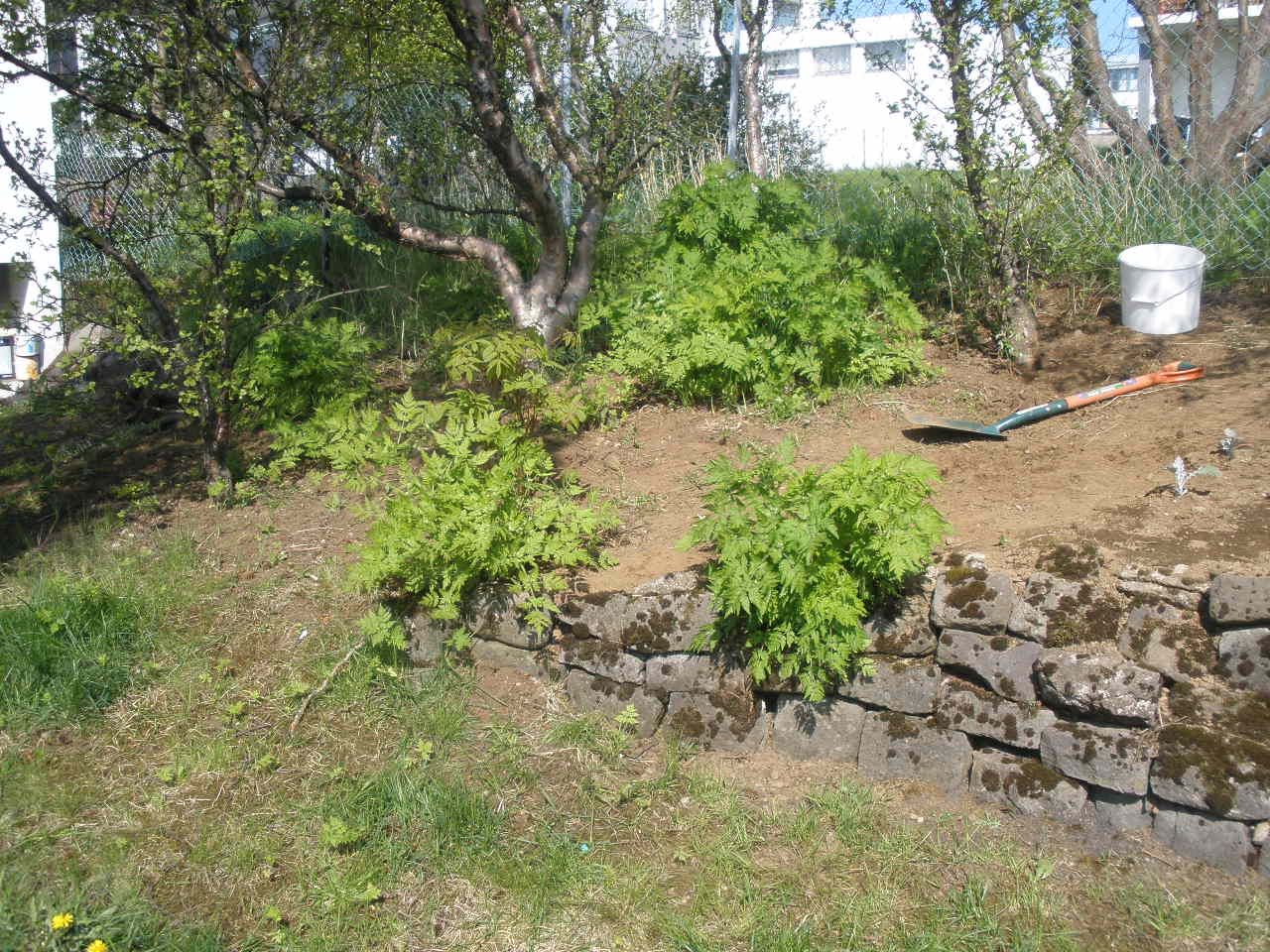Þetta er víst ekki hvönn heldur kerfill. En vertu velkomin ævinlega, sólbekkirnir komnir á svalirnar og í gær mældist 34 stiga hiti í sólinni – til hvers er alltaf verið að mæla í skugganum?