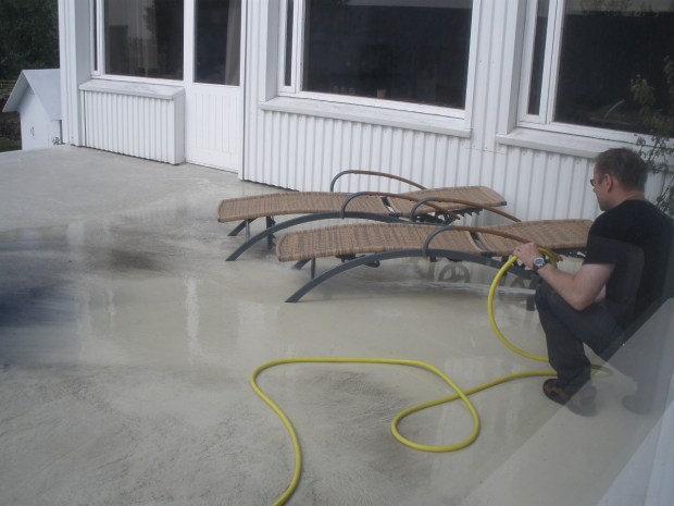 Í gær rigndi ösku yfir okkur og mældist langt yfir öllum skráðum og leyfilegum heilbrigðismörkum. Þetta var bara þunnt lag, ekkert á við það sem Sunnlendingar hafa mátt þola síðustu vikur.  Askenasí brá sér á svalirnar og smúlaði þær með garðslöngu svo Öskubuska gæti sest út í sólbað með te og bók. Þá hefur verið settur upp hitamælir á stofuglugga og sýndi hann 24 gráður síðdegis. Á næstu dögum verða birtar myndir hér af framgangi og upprisu svalaveggsins langþráða en smíði hans hefst í vikunni þar sem okkur hefur borist liðsauki. Fylgist með frá byrjun!