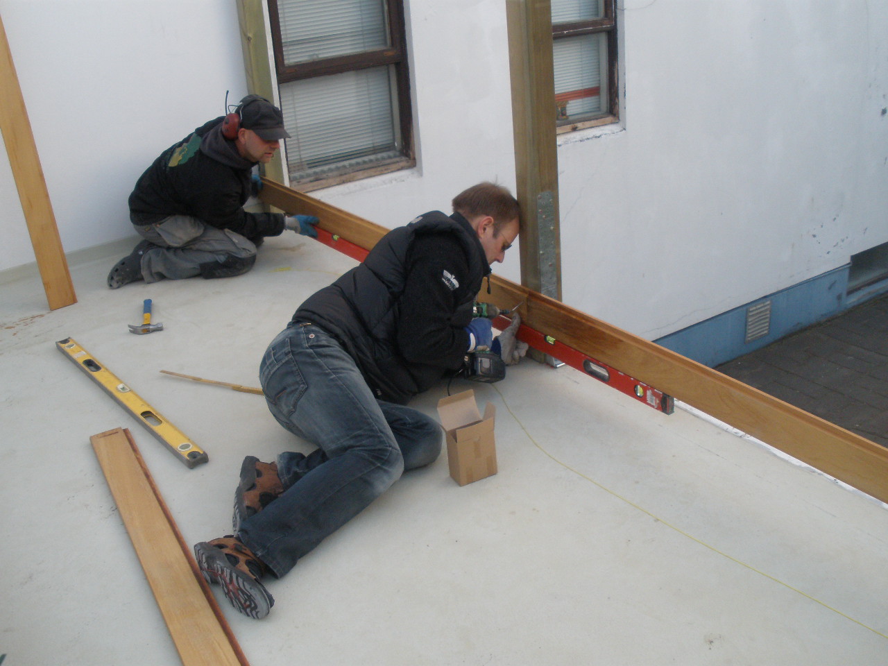 Miklar og nákvæmar mælingar hafa átt sér stað á svölunum. Í ljós hefur komið að veggir eru skakkir og gólf hallandi og hefur reynt á mælingamennina. En nú er fyrsta fjölin lögð og stefnir í að þetta fari að skotganga. Ráðskonan er sveitt að elda handa vinnumönnunum, hún var með lasagna að hætti hússins í gær og í kvöld verður spænskur saltfiskréttur að hætti Soffíu frænku.