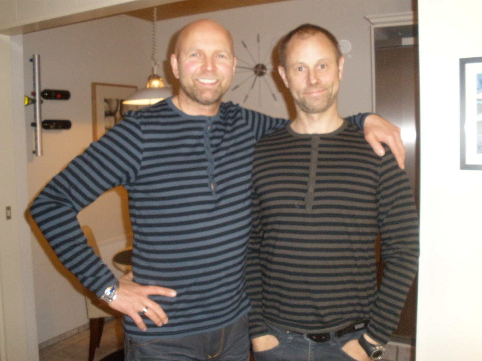 Hér hafa verið góðir gestir sl. þrjár vikur, þeir Siggi Magg og Eiríkur Arnar, frændur Brynjars. Þeir bræður hafa verið með risaskómarkað í Molduhrauni. Siggi og Brynjar hafa verið vinir og fóstbræður frá blautu barnsbeini en eru samt ekki alltaf eins klæddir þótt þeir séu það á þessari mynd. Það er búið að vera mjög gaman að hafa þessa góðu gesti. Í gærkvöldi fórum við öll á Sushi í Iðu og átum fisk af færibandi.