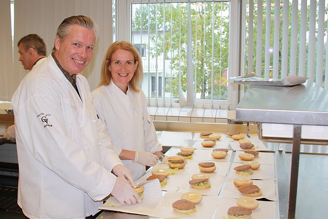 Busalingarnir voru vígðir í dag í MK og fengu hamborgara til að bæta sér í munni á eftir mysubað og ógeðsdrykk. Á myndinni erum við Helgi aðstoðarskólameistari að græja borgarana en alls voru 350 hammarar steiktir í snarheitum.