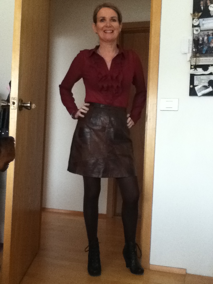 Tískan fer í hringi og nú er maður orðinn svo gamall að upplifa forna tísku sem nýja. Upp úr djúpum fataskápsins dró ég gamalt brúnt leðurpils sem Soffía frænka gaf mér fyrir löngu og dubbaði mig upp í afmælisveislu. Varð fyrst að fá blessun Ingu tískulöggu sem tók myndina á ipodinn og samþykkti dressið þar með.