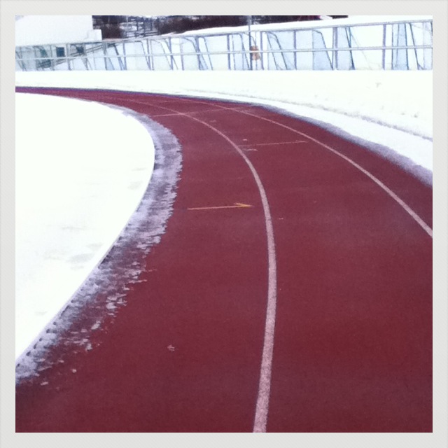Ekki hefur viðrað sérlega vel til útihlaupa í desember og janúar. Þá þarf að grípa til annarra ráða því ekki dugir að hreyfa sig ekki neitt. Fyrsta tilraun mín 2012 til að halda áfram að skokka tvisvar-þrisvar í viku eins og sl. haust, fór fram á Kópavogsvelli í vikunni en þar er þessi fína hlaupabraut, 400 m, rudd og slétt og fín.