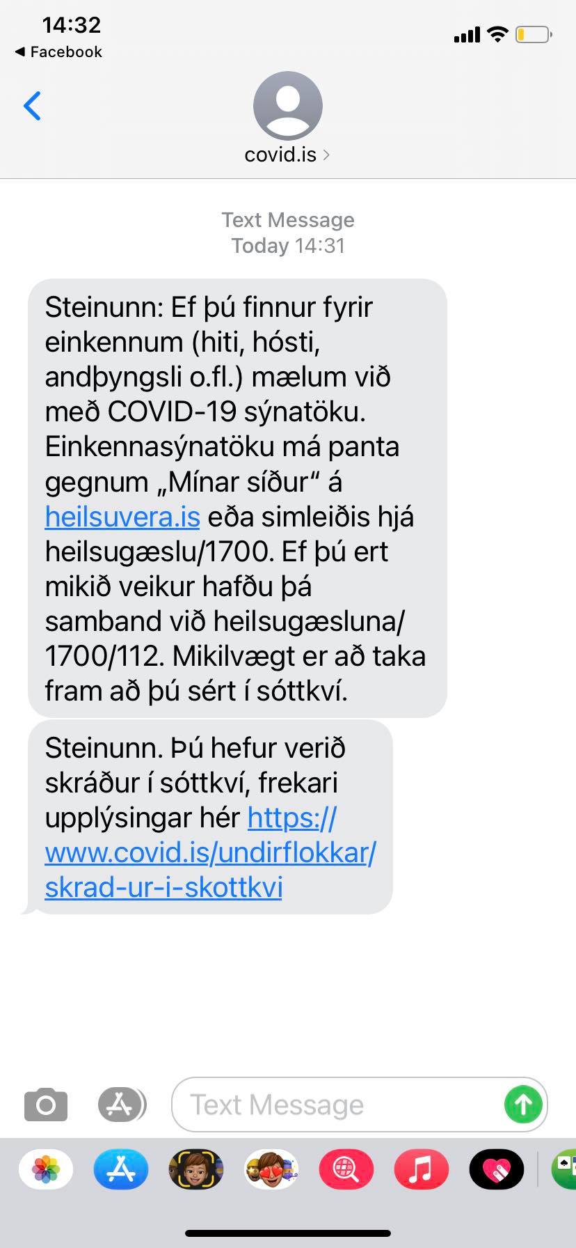 Á degi 5 kl 13.15 var hin langþráða sýnataka á Suðurlandsbraut. Urðu þar fagnaðarfundir því þeir sem voru í boðinu alræmda voru boðaðir á svipuðum tíma. Allan daginn var ég að bíða eftir svari en undir kvöld höfðu flestir fengið neikvætt svar. En ekki ég. Verð að viðurkenna að ég sveiflaðist á milli vonar og ótta þótt ég hefði engin einkenni. Hvað ef ég er með covid? Kæmist ekki til vinnu dögum saman, lægi í bælinu og gæti enga björg mér veitt og yrði jafnvel marga mánuði að jafna mig? Ég mátti ekki til þess hugsa. Vá hvað ég ætlaði að gæta mín framvegis varðandi sóttvarnir. Það varð alveg skýrt í mínum huga hvað ég er í raun heppin en líf hvers manns er brothætt og góðir dagar hverfulir. Í raun þarf ótrúlega litið til að allt fari á hvolf í tilverunni: atvinnumissir, ástvinamissir, vinir fjarlægjast, heilsubrestur, skilnaður, eignatjón, ofbeldi… enginn er undir þetta búinn en þetta er blákaldur veruleiki. Því skyldi hvern dag að kveldi lofa, þakka fyrir það sem er til staðar, fylla sjálfan sig og aðra af kærleika og umburðarlyndi, horfa á stóru myndina en festa sig ekki í nöldri, píslarvætti og smámunum. Leita skýringar á vanlíðan eins og höfnun og ástleysi, vanmætti, uppgjöf, pirringi og reiði; takast á við og vinna úr þeim tilfinningum sem skolast yfir á hverjum degi án ásökunar eða örvæntingar. Iðka æðruleysi og sleppa tökum. Með þessi fögru fyrirheit að leiðarljósi bjó ég mig til svefns þetta sunnudagskvöld. Þegar ég lagðist á koddann barst sms: þú ert ekki með covid.