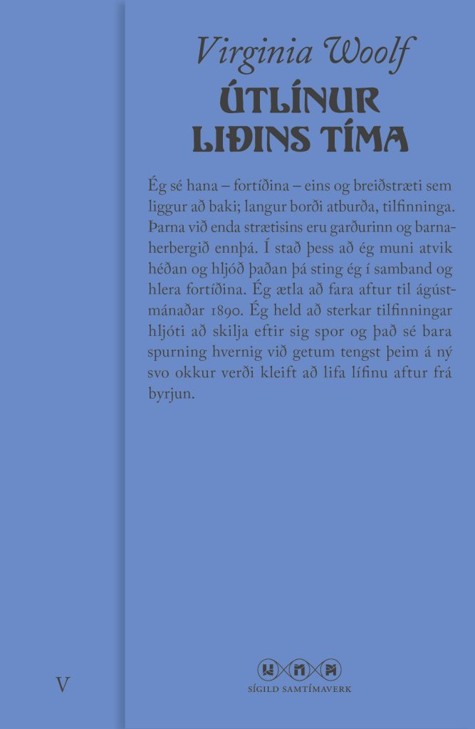 Breska skáldkonan Virginia Woolf (1882-1941) er einn fremsti rithöfundur 20. aldar, frumkvöðull módernisma og femínisma í skáldskap og baráttukona fyrir réttindum kvenna. Það var hún sem mælti þau fleygu orð að kona þyrfti að hafa sérherbergi til að geta verið rithöfundur. Á árunum 1939-40 ritaði hún endurminningar sínar, sem hún nefnir í textanum „útlínur“, en náði ekki að koma þeim í bók því hún batt enda á líf sitt sem kunnugt er. En það sem hún þó náði að skrifa um uppvöxt sinn er fallegur og áhrifaríkur texti um gleðistundir, atvik og áföll og fjölskyldulíf í samfélagi sem er þrúgað af eftirhreytum Viktoríutímans. Í fyrra kom bókin út í íslenskri þýðingu Soffíu Auðar Birgisdóttur, í flokki sígildra samtímabókmennta hjá Unu útgáfuhúsi og ber titilinn Útlínur liðins tíma.